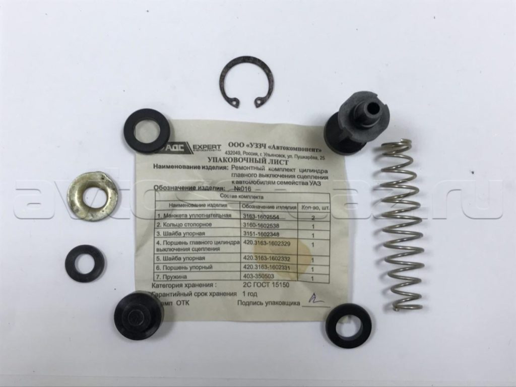 Ремкомплект главного цилиндра сцепления (РК ГЦС) АДС (016/1602300) предназначен для восстановления работоспособности главного цилиндра сцепления автомобилей УАЗ. Он позволяет устранить течи и восстановить правильное функционирование системы сцепления, обеспечивая плавное и надежное переключение передач. Использование ремкомплекта является экономичным решением, позволяющим избежать полной замены цилиндра.