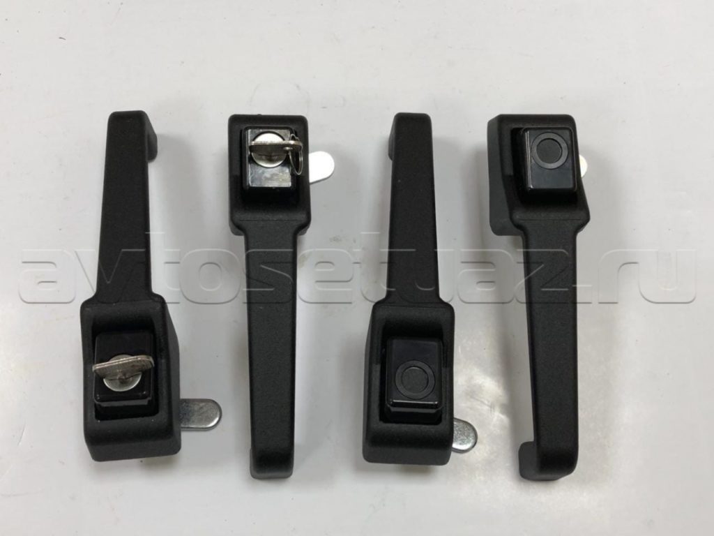 Комплект ручек двери люкс для автомобилей УАЗ 469 и УАЗ 3151. Обеспечивают удобное открывание и закрывание дверей. Улучшают внешний вид автомобиля. Изготовлены из качественных материалов, что гарантирует долговечность и надежность в эксплуатации.