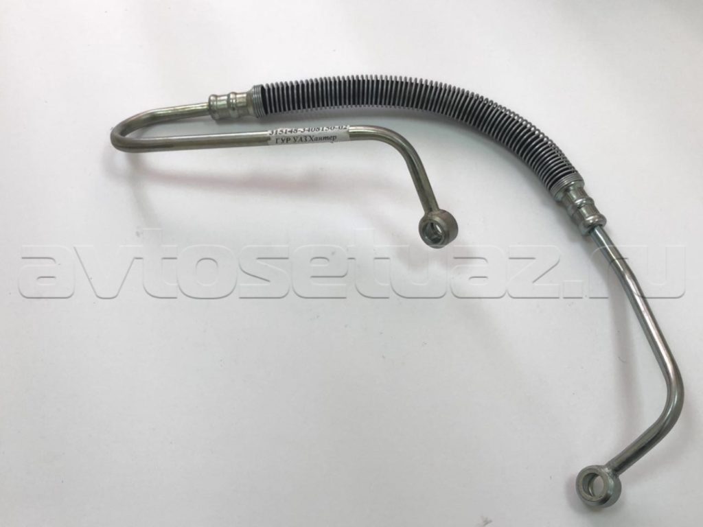 Данный шланг ГУР предназначен для установки на автомобили УАЗ «Хантер», оснащенные дизельными двигателями ЗМЗ-514. Артикул детали: 315148-3408150-02. Подходит для замены штатного шланга, вышедшего из строя, или для ремонта системы гидроусилителя руля.