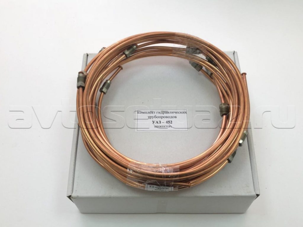 В комплект входит полный набор трубок, необходимых для замены всей тормозной магистрали на УАЗ 452 с инжекторным двигателем.